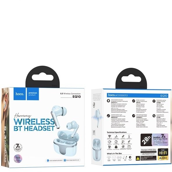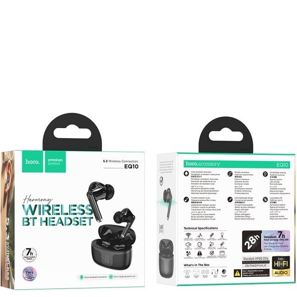 ایرپاد هوکو مدل EQ10 با طراحی in-ear دو گوشی، از اتصال بلوتوث نسخه ۵.۳ پشتیبانی میکنه و با انواع گوشیهای اندروید و iOS سازگاره. باتری کیس شارژ ظرفیت ۳۰۰ میلیآمپر ساعت داره و گوشیها تا ۳ تا ۴ ساعت پخش موسیقی یا مکالمه رو پشتیبانی میکنن. این مدل فاقد نویز کنسلینگ فعال (ANC) و حذف نویز تماس (ENC) هست، اما کیفیت صدای قابل قبولی برای تماس و موسیقی ارائه میده.