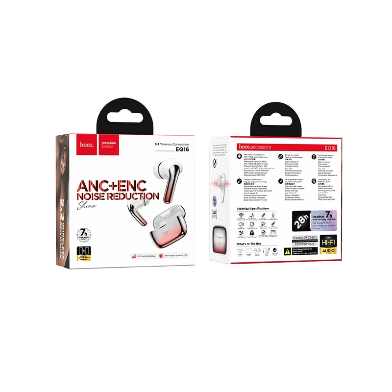 ایرپاد هوکو مدل EQ16 ANC+ENC با طراحی in-ear دو گوشی، از اتصال بلوتوث نسخه ۵.۳ پشتیبانی میکنه و با انواع گوشیهای اندروید و iOS سازگاره. این مدل مجهز به تراشه JL AC7003 با قابلیت HiFi Audio هست که صدایی نزدیک به صوت اصلی تولید میکنه. فناوریهای ANC (حذف نویز فعال) و ENC (حذف نویز تماس) باعث میشن توی محیطهای شلوغ هم تماس واضح و موسیقی با جزئیات بالا داشته باشی.
