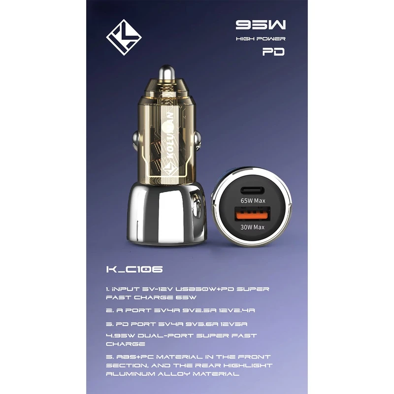 شارژر فندکی کلومن K-C106؛ شارژ سریع و ایمن در خودرو