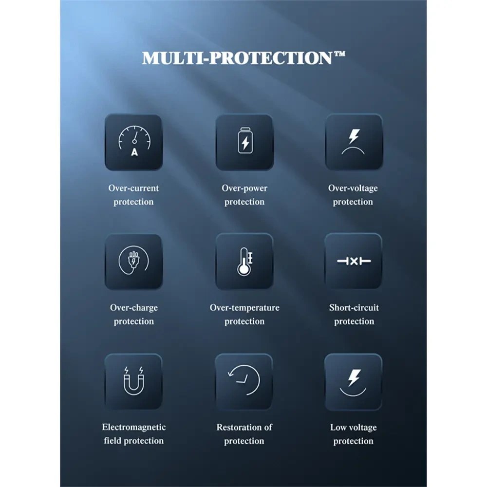 بدنهی مقاوم و خوشساختش با نمایشگر LED درصد شارژ، حس حرفهای بودن رو القا میکنه. وجود دو پورت USB-A و یک پورت USB-C، امکان شارژ همزمان چند دستگاه رو فراهم میکنه. همچنین مدارهای محافظتی داخلی از دستگاهها در برابر نوسانات ولتاژ، جریان بیشازحد و اتصال کوتاه محافظت میکنن.