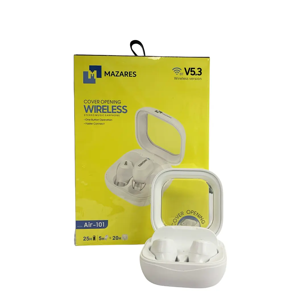 یه ایرپاد نیست، یه نسخه سادهشده از تجربه ایرپادهای حرفهایه برای کسایی که دنبال کیفیتن، بدون هزینه اضافه، ایرپاد بلوتوثی مازارس مدل Air-101 یه انتخاب هوشمندانه برای استفاده روزمره، تماس و موسیقیه.