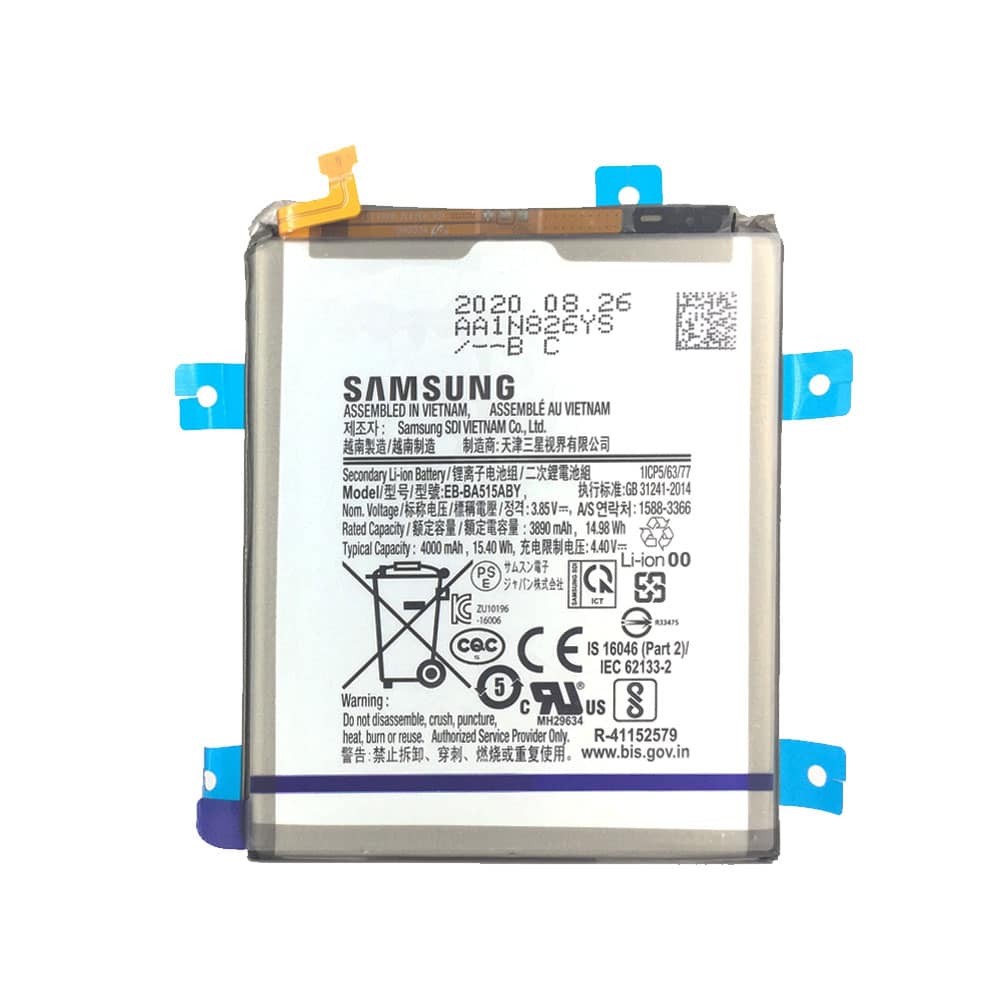 باتری سامسونگ A51 مدل EB-BA515ABY با ظرفیت ۴۰۰۰ میلیآمپر ساعت و فناوری لیتیوم-پلیمری، شارژدهی مناسب و عملکرد پایدار رو برات تضمین میکنه مخصوص استفاده روزمره، تماسهای طولانی و پخش ویدیو.