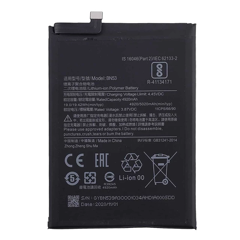 باتری اورجینال Xiaomi BN53 با ظرفیت 5020 میلیآمپر ساعت و ولتاژ 3.87 ولت، شارژدهی قدرتمند و پایدار رو برمیگردونه.
