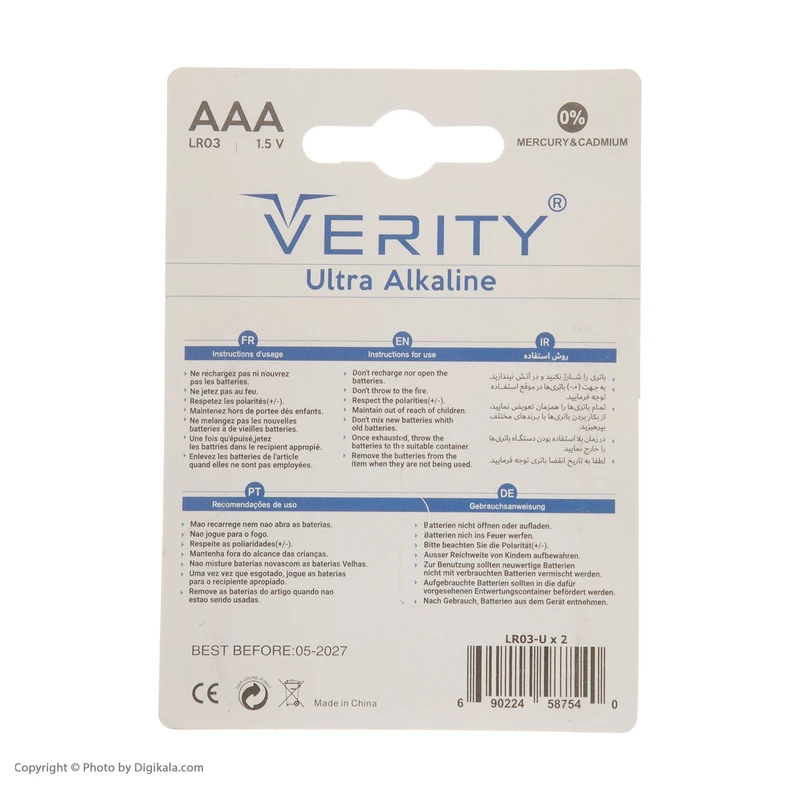 کوچیکه اما پرانرژی؛ وریتی LR03 با تکنولوژی آلکالاین، توان پایدار رو به وسایل کوچیکت می‌ده. باتری نیم‌قلم وریتی مدل Ultra Alkaline LR03 بسته دو عددی با طراحی استاندارد و تکنولوژی آلکالاین ساخته شده تا برای انواع دستگاه‌های کوچک مثل کنترل تلویزیون، اسباب‌بازی، ساعت و لوازم جانبی همراه مطمئنی باشه.
