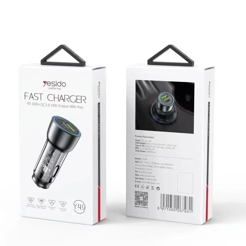 مدل Y49 با طراحی مینیمال و بدنهای از پلاستیک مقاوم ABS + PC ساخته شده و به دو درگاه خروجی USB مجهزه که امکان شارژ همزمان دو دستگاه رو فراهم میکنن. توان خروجی کلی این فندکی ۳.۱ آمپر هست که برای شارژ سریع گوشی، تبلت یا سایر گجتها در خودرو کاملاً کافیه. ولتاژ ورودی ۱۲ تا ۲۴ ولت، باعث میشه هم برای سواری و هم خودروهای سنگین قابل استفاده باشه.